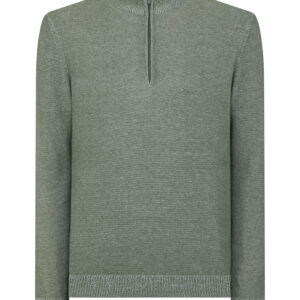 Remus Uomo Two Tone Half Zip Knit Sweater – Green