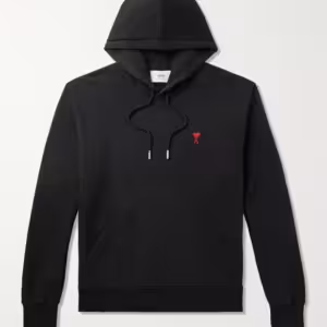 AMI Paris Logo-Embroidered Cotton-Jersey Hoodie – Black