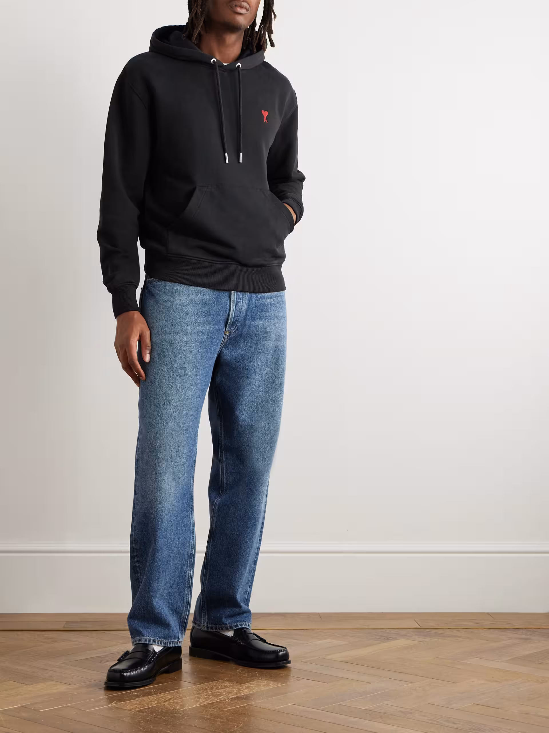 AMI PARIS’ hoodie is cut from mid-weight loopback cotton-jersey, so it’s a comfortable piece to layer over a T-shirt. It’s embroidered with the brand’s signature ‘Ami de Cœur’ logo at the chest.