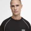The B.Intl Markford Crew Jumper offers a modern twist on a classic silhouette. Crafted from a soft cotton-blend interlock fabric, this crew neck jumper features contrast piping along the raglan sleeve seams for a subtle yet stylish detail. Designed with a ribbed funnel neck, cuffs, and hem, it ensures both comfort and a polished finish. Branded with a bold direct print and the signature Barbour International silicon lozenge on the left chest, this regular-fit jumper is a versatile addition to your wardrobe.