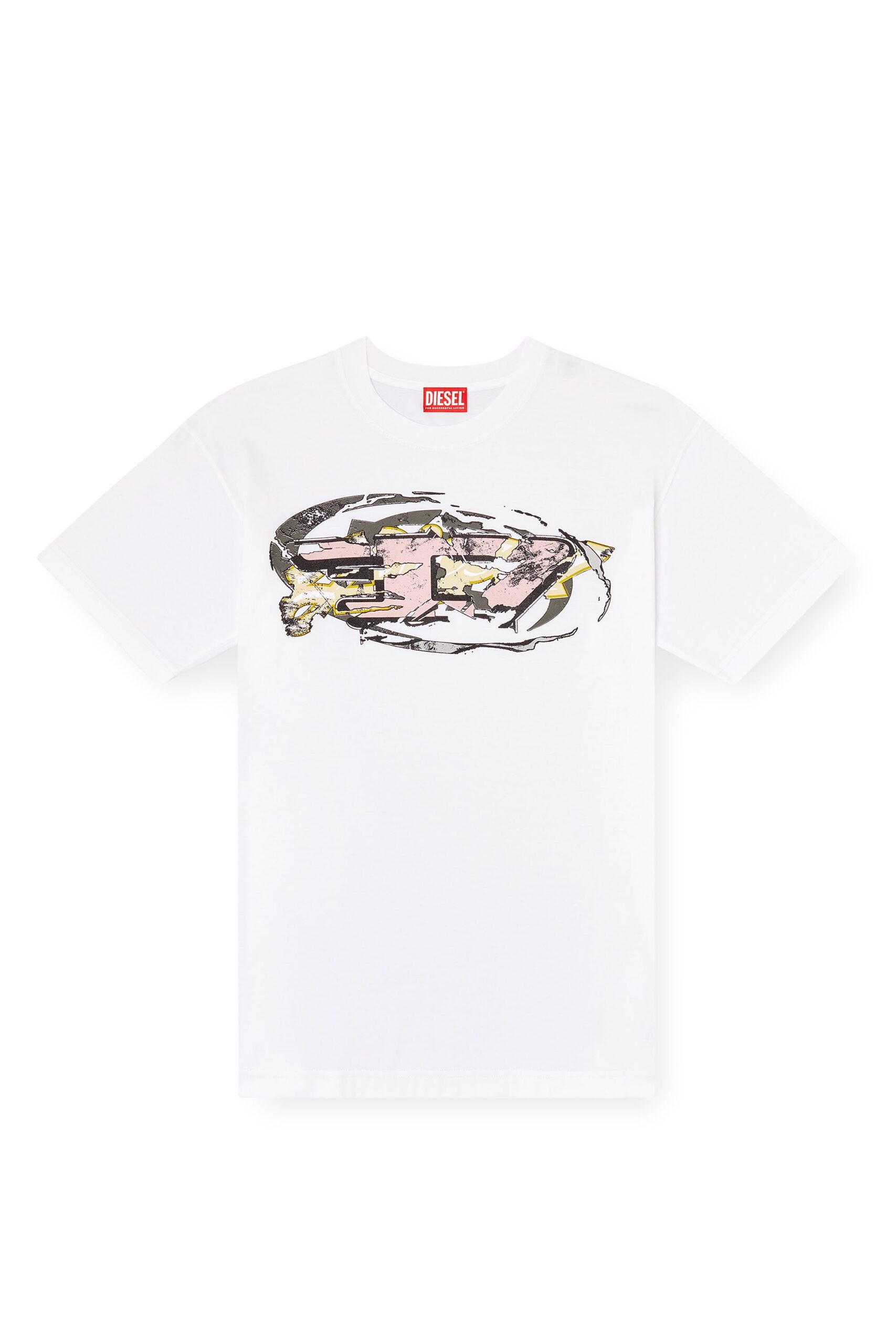This men’s T-shirt is built for a regular fit from organic cotton jersey. The front print is an edgy take on the classic Oval D logo, rotated and layered to create a glitchy, broken-up effect with tactile flocked parts.