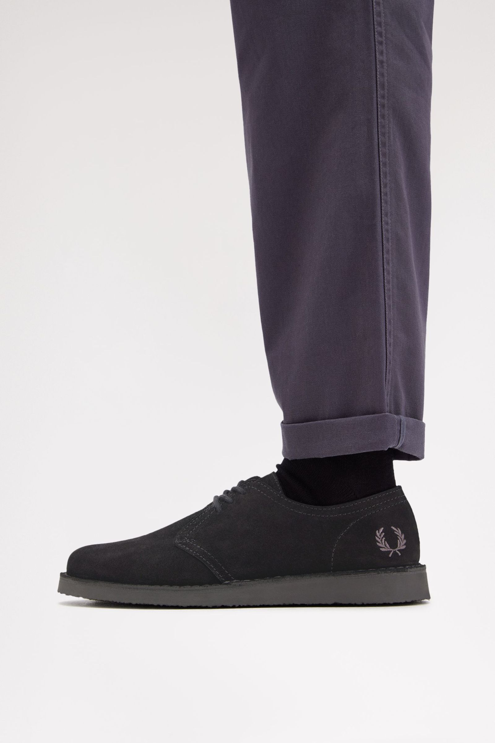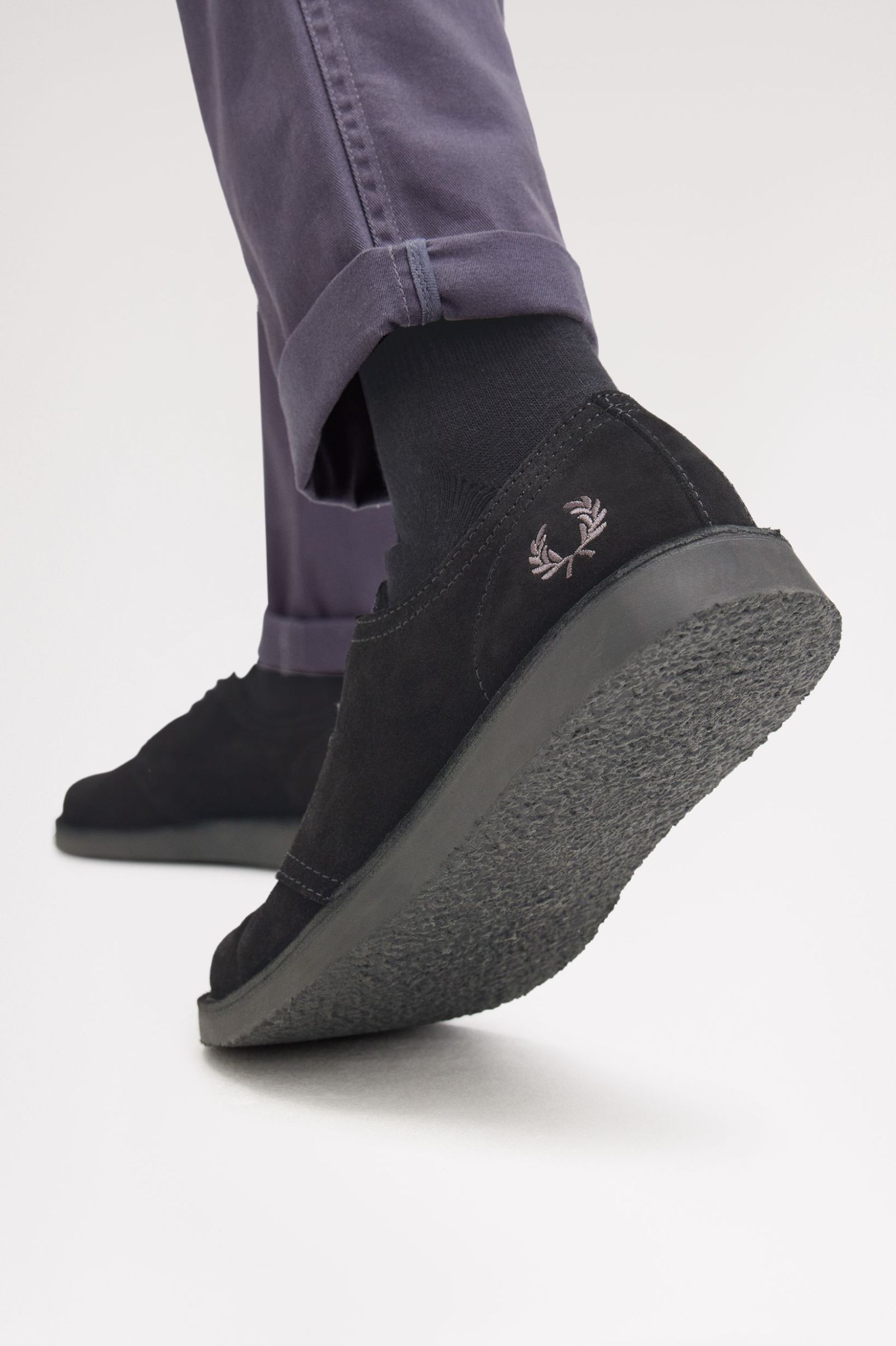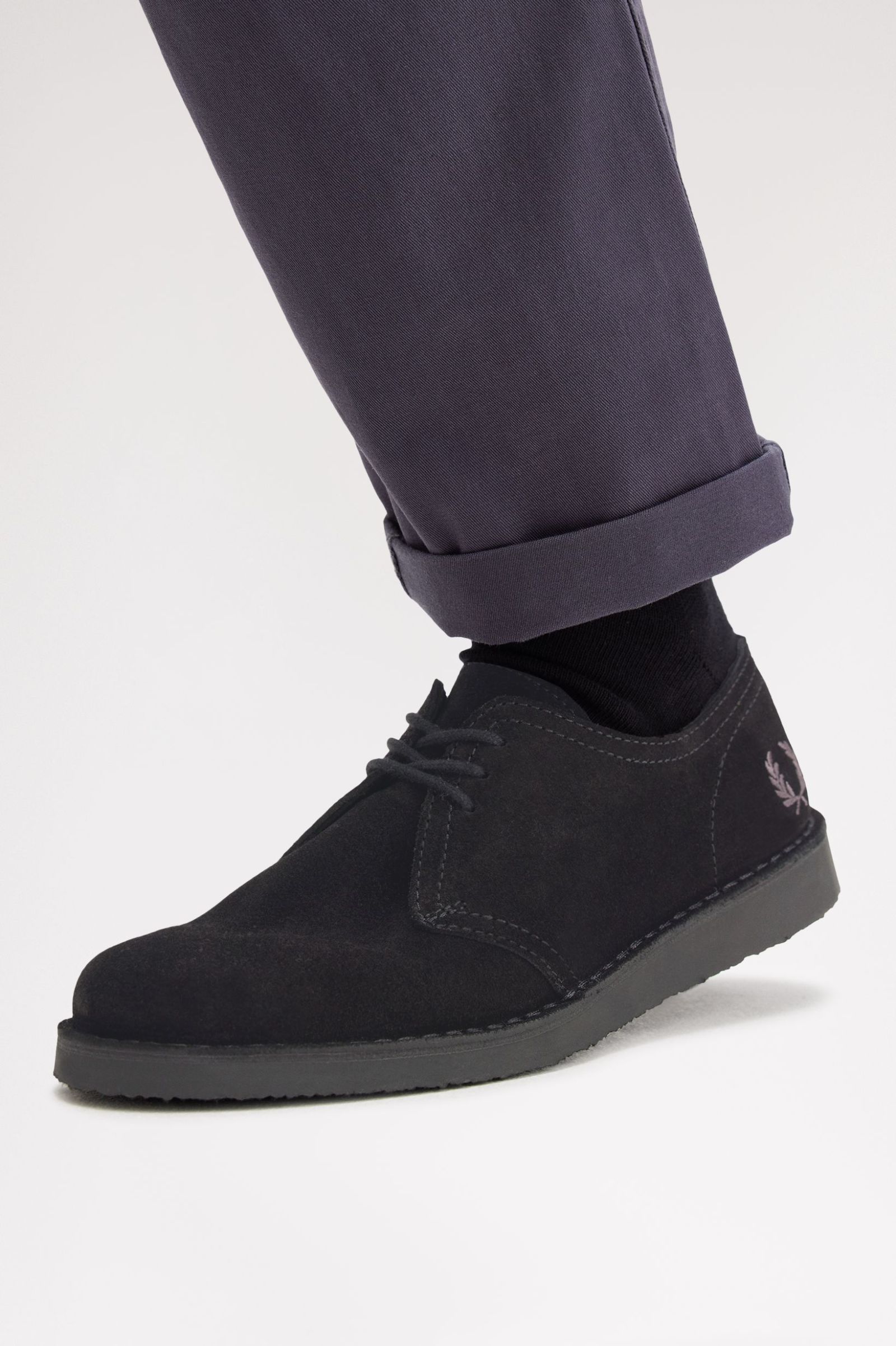 Suede upper / Tonal round laces / Crepe effect outsole / Leather in-sock with gold foil branding / Embroidered Laurel Wreath to the heel counter