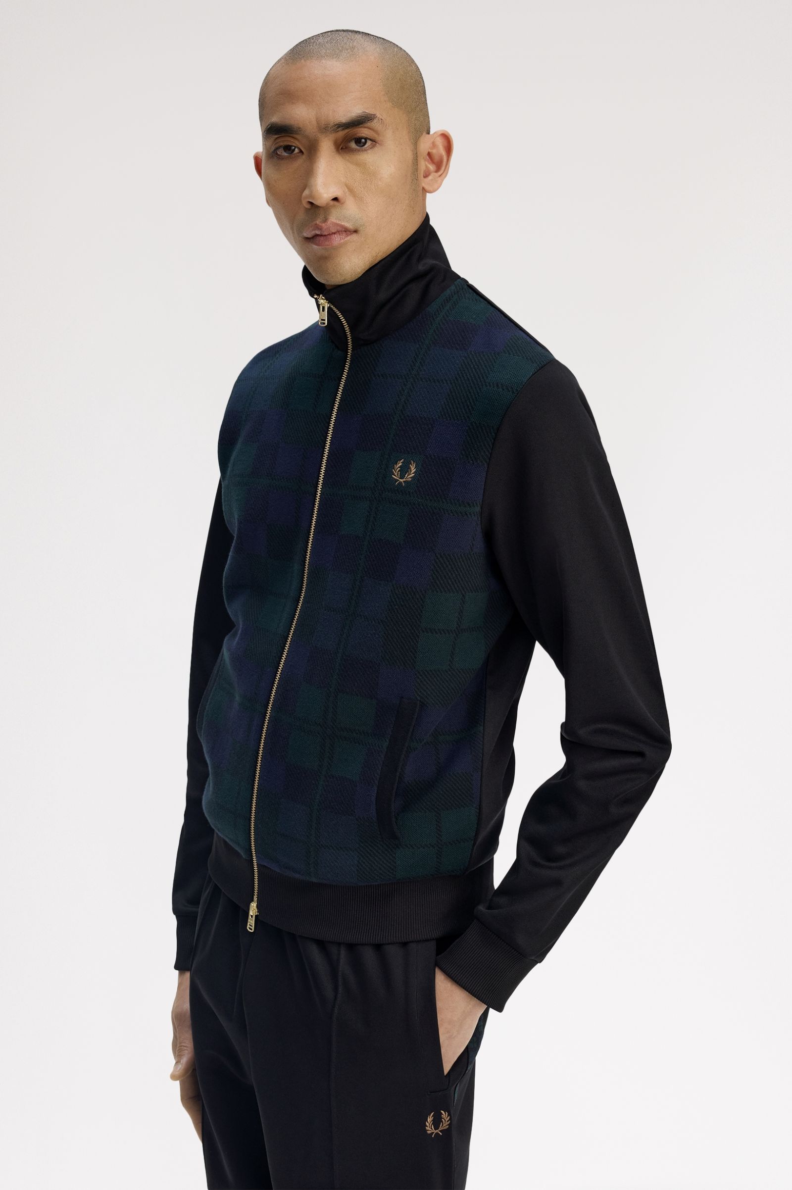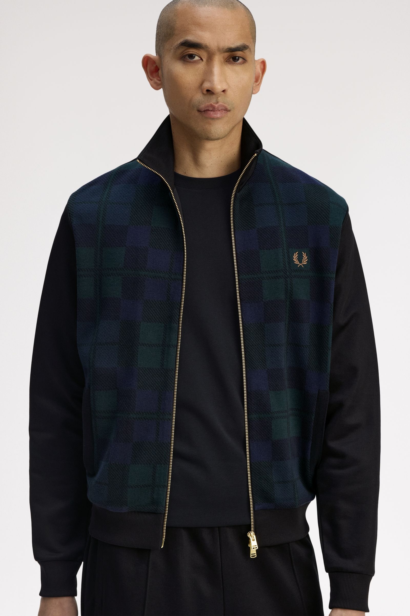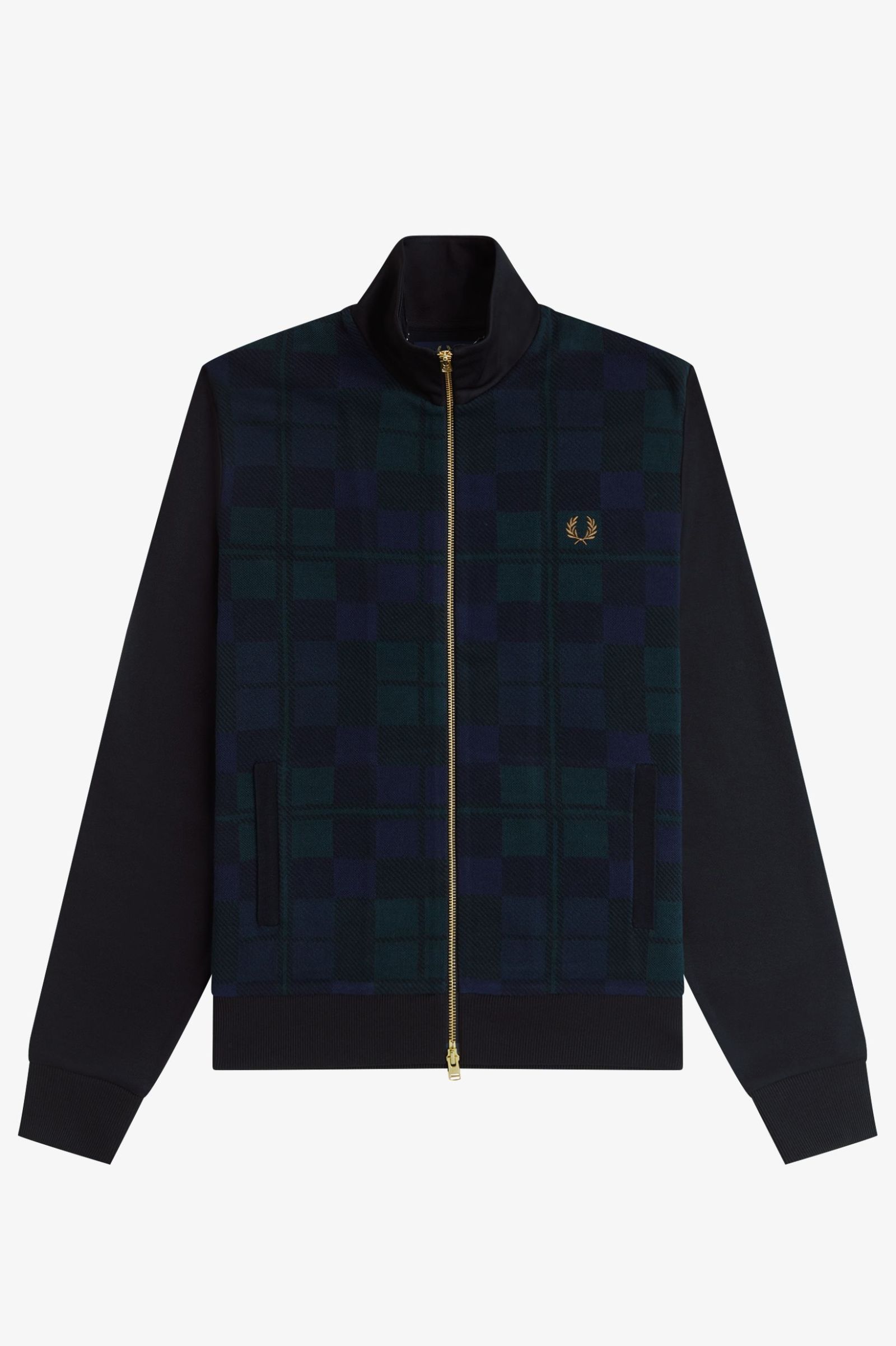 Our track jacket gets a touch of dark tartan in combed cotton jacquard.