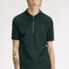 A crepe cotton piqué polo shirt with single tipping detail at the collar and a silver tone metal zip. More textured than our signature polo fabric and especially crease-resistant.