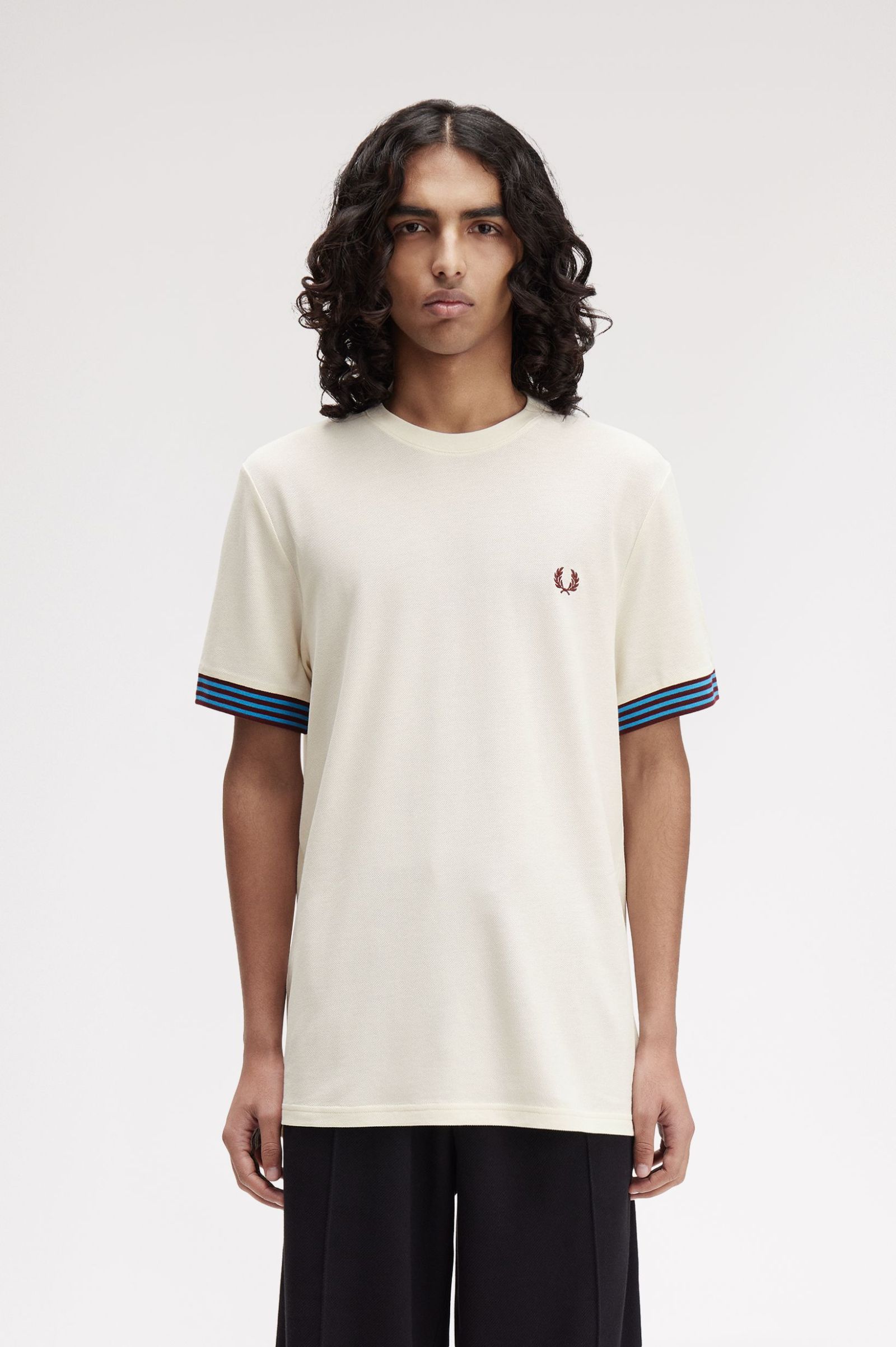 Fred Perry M7707 Striped Cuff T-Shirt – Ecru