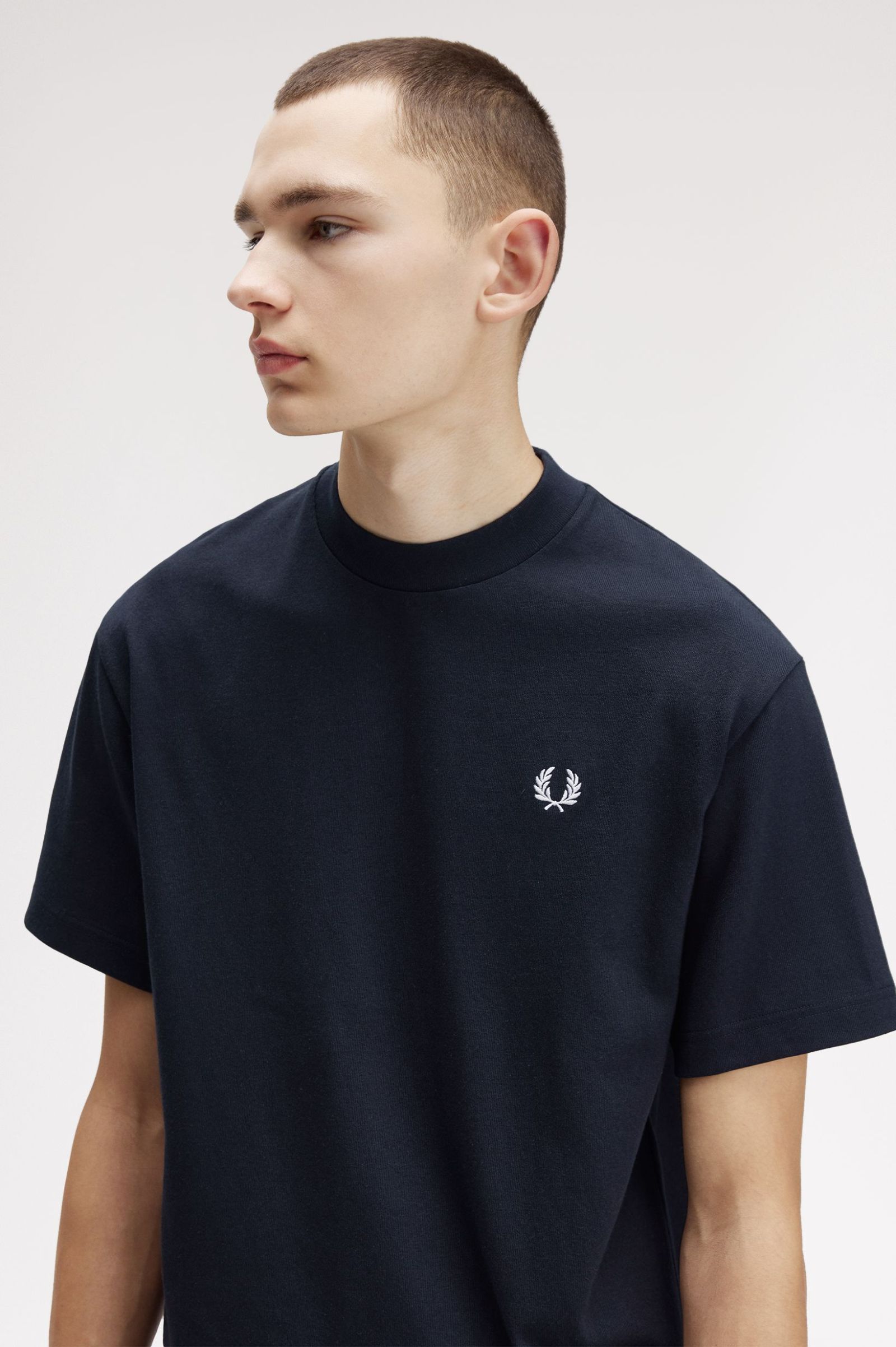Heavy cotton jersey fabric / Relaxed fit / Deep ribbed crew neck / Open self fabric cuff / Laurel Wreath embroidered logo on the left hand chest