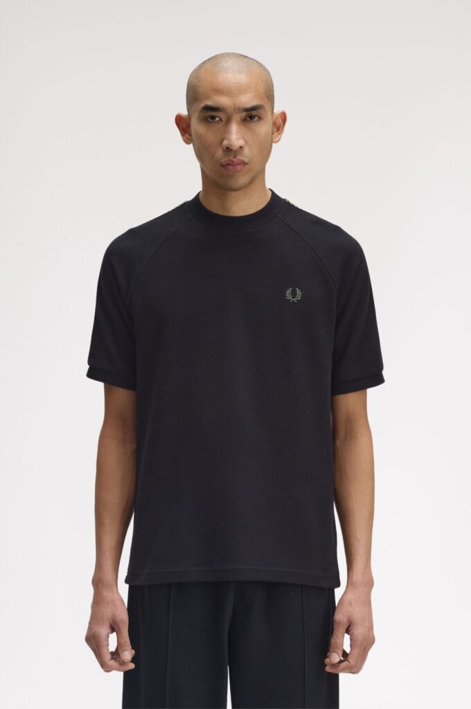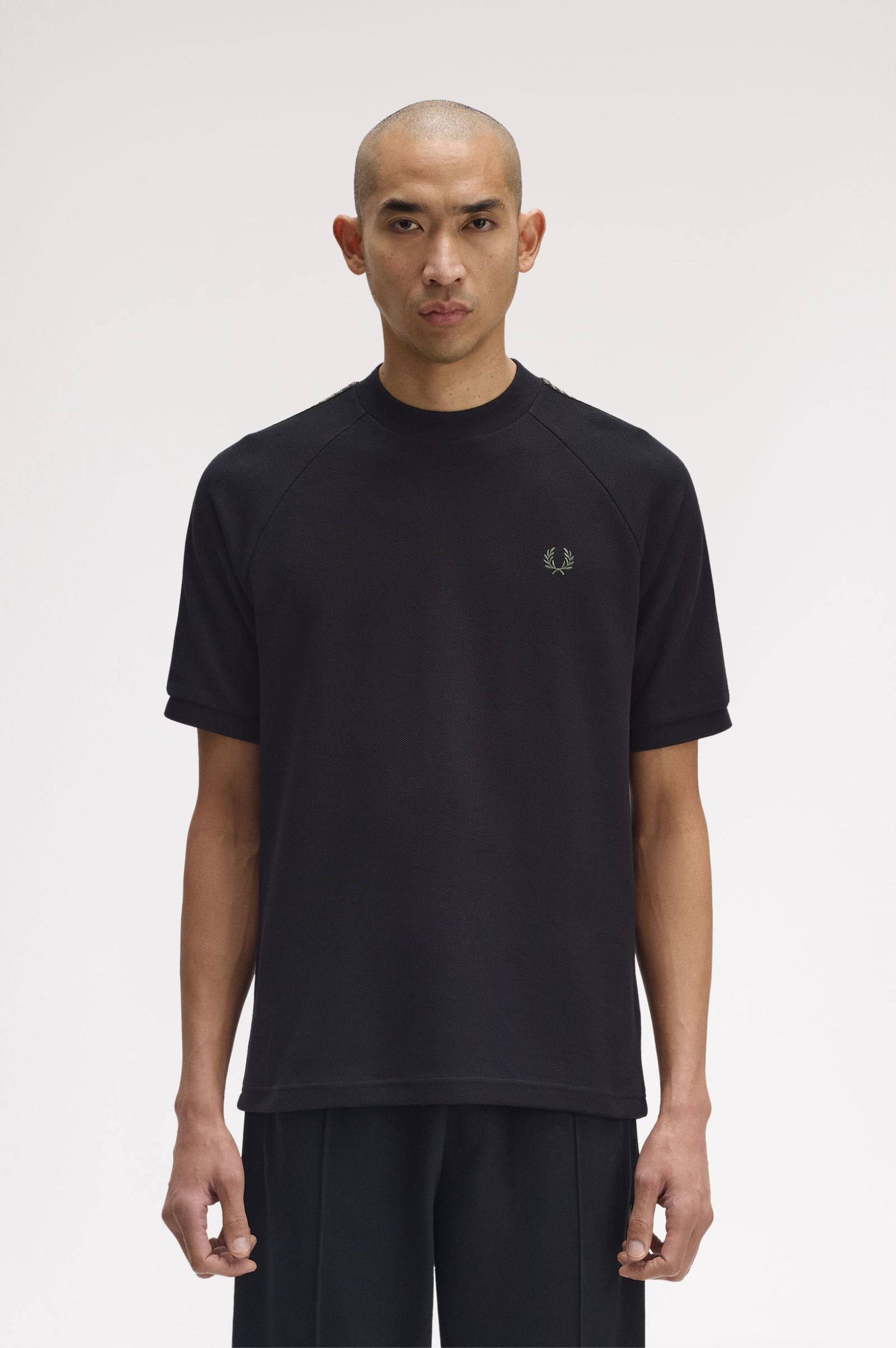 Honeycomb cotton piqué fabric / Regular fit / Flat knit crew neck / Tape detail to shoulder and sleeves / Laurel Wreath embroidered logo on the left hand chest
