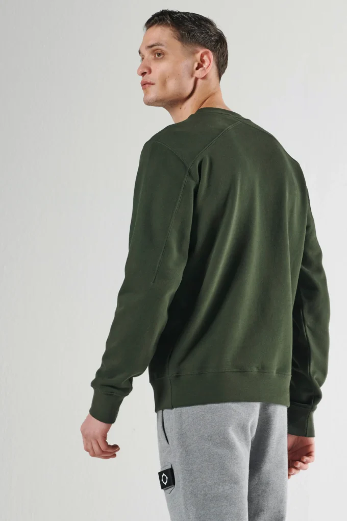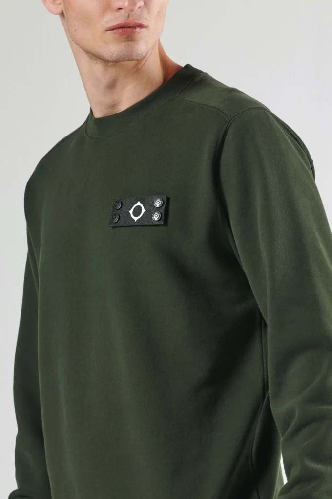 MA.STRUM Neo crew sweat, featuring a crew neck, carbonic soft handle finish with removable ID badge to left chest.