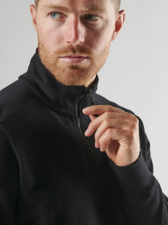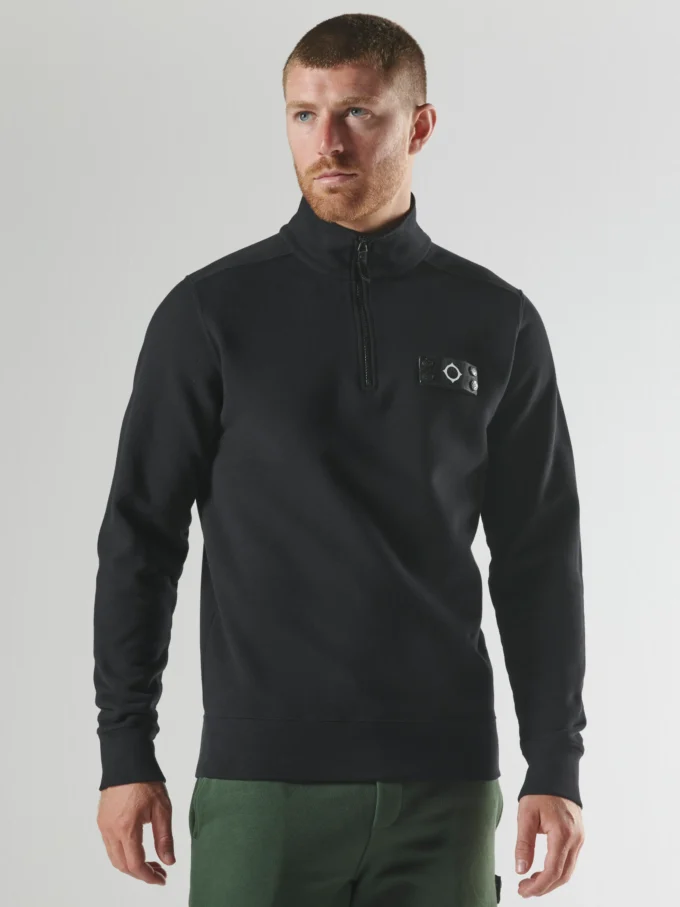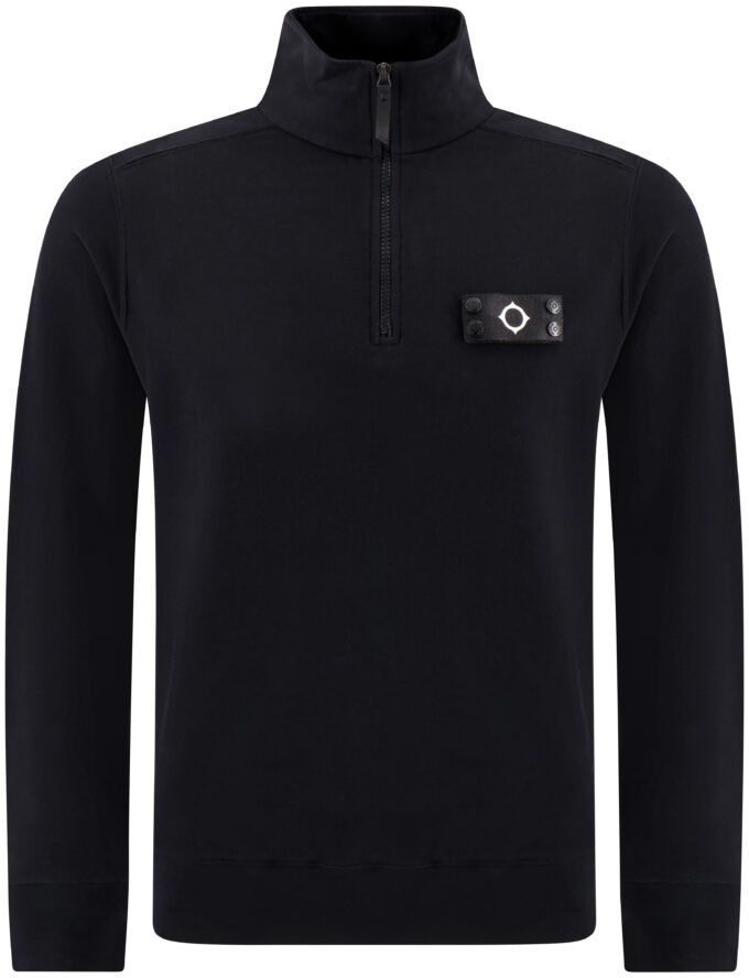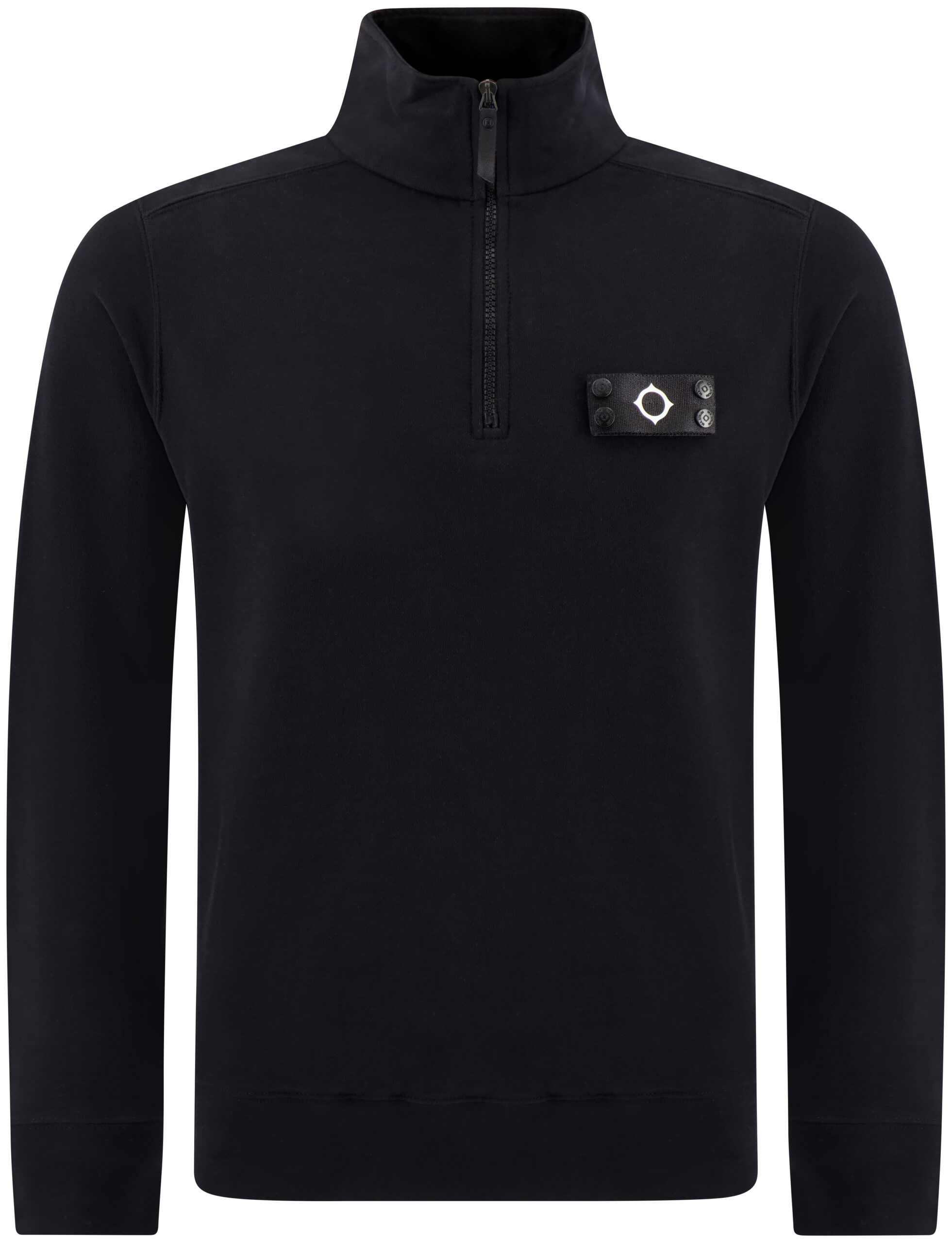 MA.STRUM Quarter zip sweat, featuring a zip neck, carbonic soft handle finish with removable ID badge to left chest.
