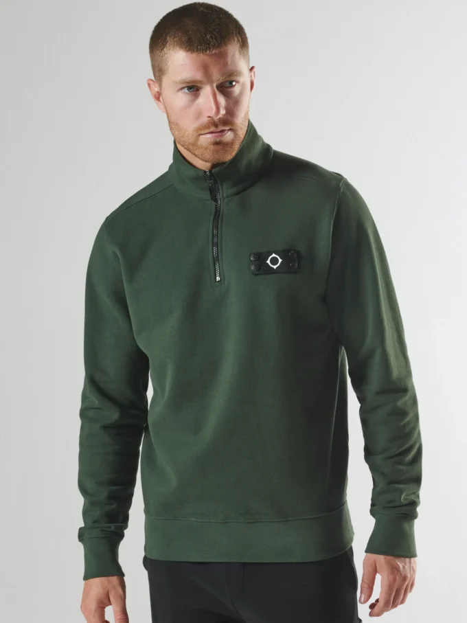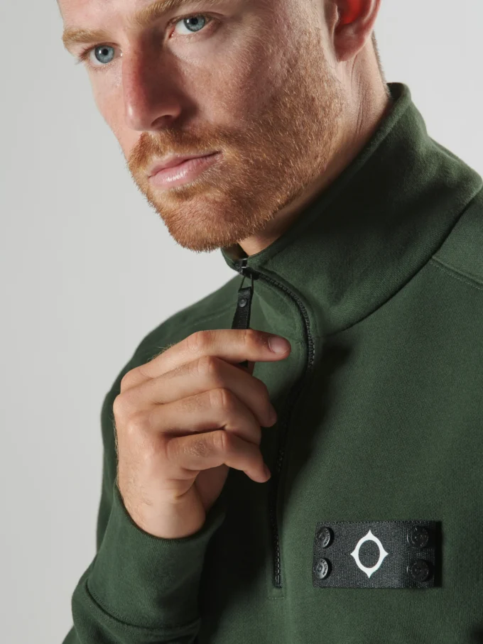 MA.STRUM Quarter zip sweat, featuring a zip neck, carbonic soft handle finish with removable ID badge to left chest.