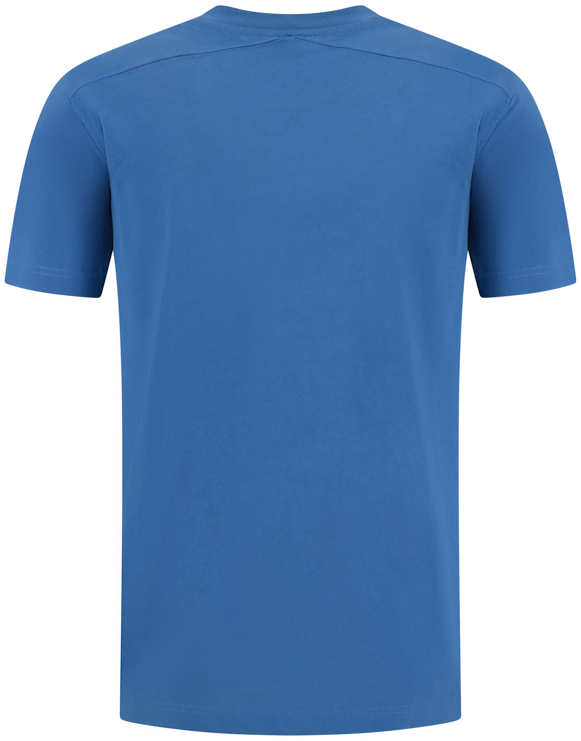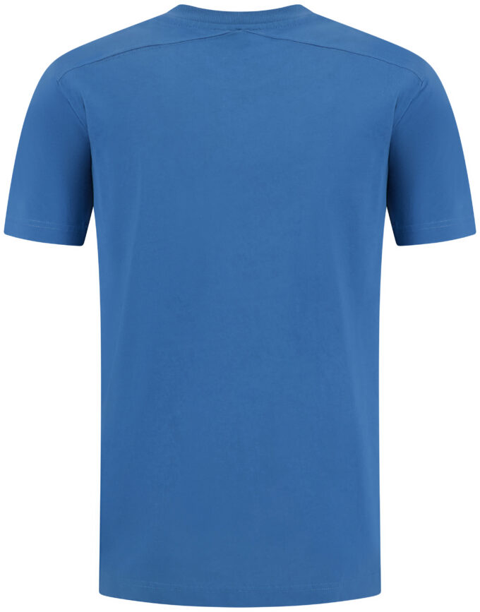 ribbed neckline. The T-shirt also has short sleeves and a straight