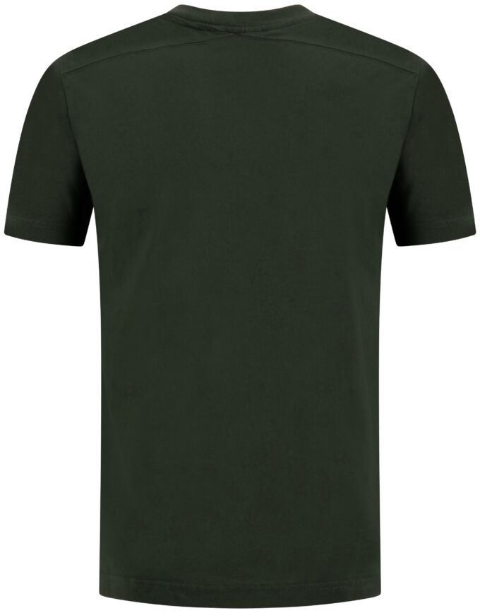 ribbed neckline. The T-shirt also has short sleeves and a straight