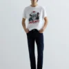 Straight-fit jeans with a regular-rise waist and a straight leg from hip to hem for a comfortable fit. This five-pocket piece comesin 10-oz cotton-blend dark indigo power stretch denim with a dark enzyme wash and features hand-created whiskering and scraping that create contrast on the used areas. Our iconic gull-wing stitching decorates the back pockets, one of which is also embroidered with the letter R. Button and zip fastening.