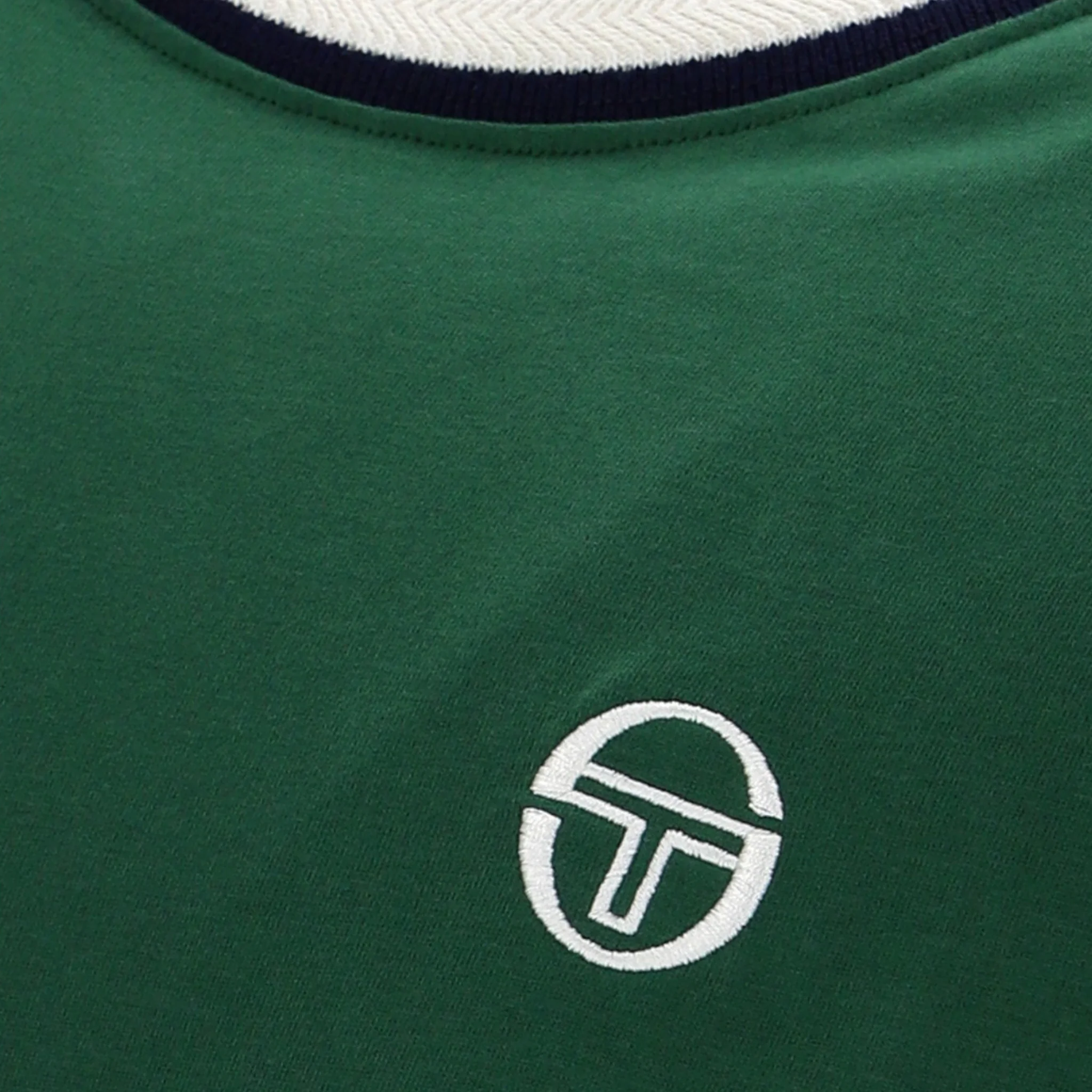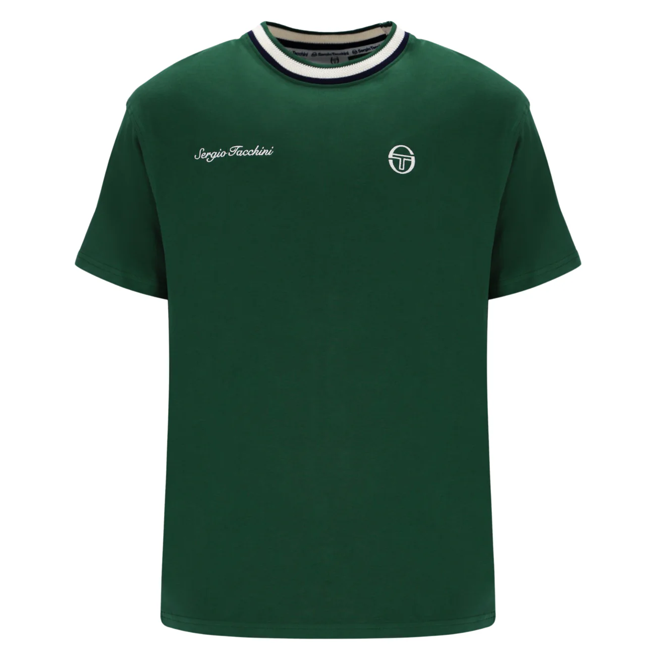 The Mens Sergio Tacchini Eden Gobarto S/S T-Shirt offers a relaxed fit crafted from soft cotton jersey for all-day comfort. It features a ribbed neckline with subtle tipping and embroidered branding on the chest, delivering understated style with a heritage touch. This versatile t-shirt is ideal for casual wear while maintaining a refined, premium look.