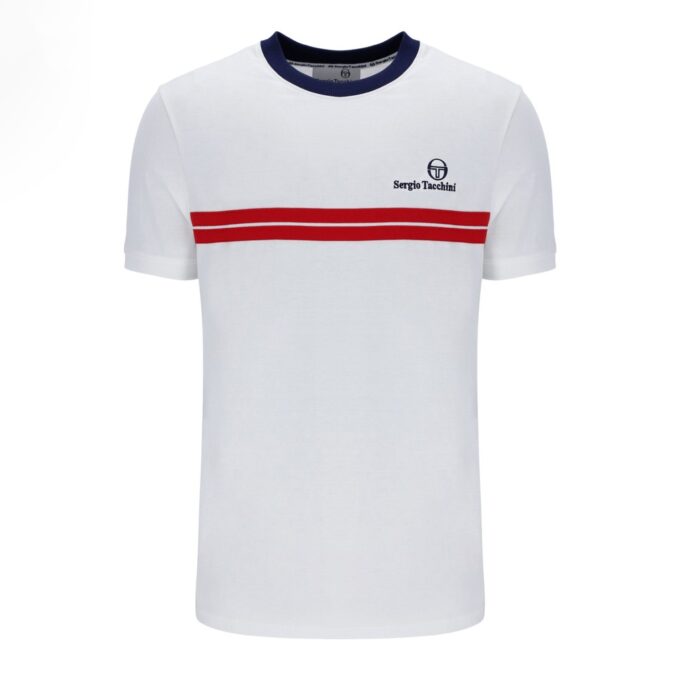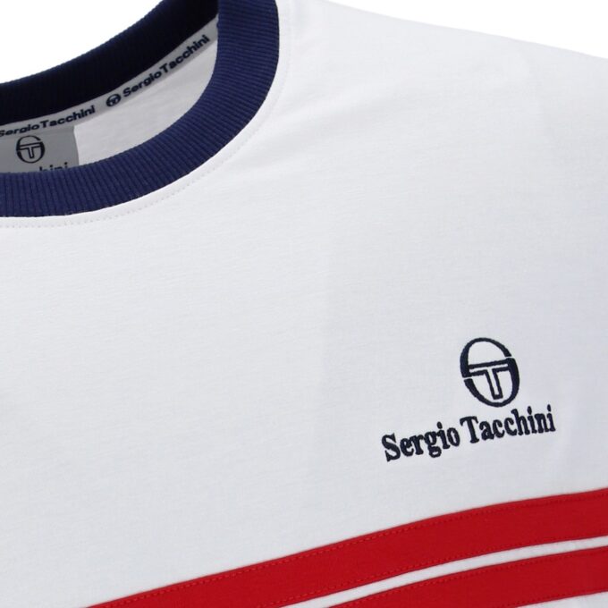 Sergio Tacchini New Supermac T-Shirt refreshes the retro Sergio Tacchini style for your casualwear wardrobe over the new season, great for relaxed occasions. Cut to a crew neck with short sleeves and featuring embroidered branding to the left side of the chest.