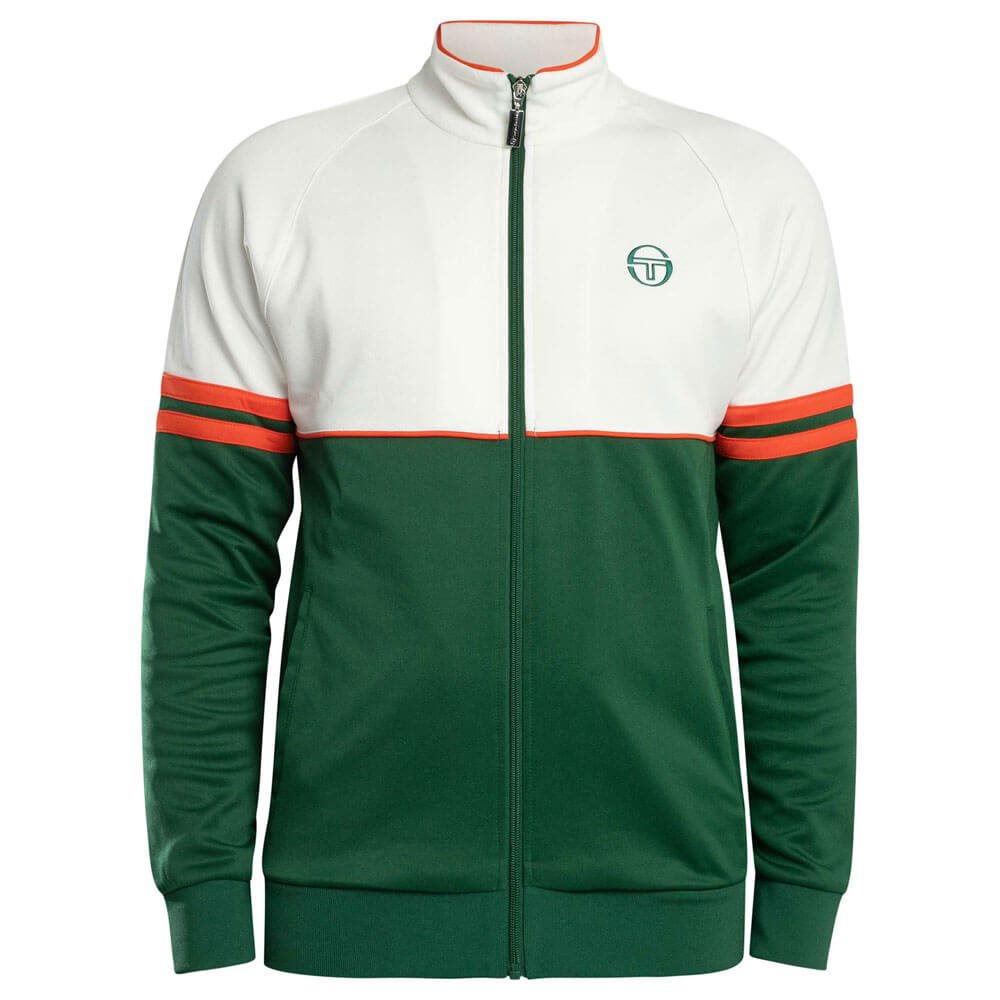 The Sergio Tacchini Orion Track Suit in Eden and Tangerine Tango is a retro-inspired set that combines comfort with athletic heritage. The top features a branded zip fastening, embroidered chest logo, open pockets, and ribbed cuffs and hem for a secure fit. The matching joggers come with a drawstring elasticated waist, elasticated ankle zips for ease of wear, open side pockets, and an embroidered logo on the leg. Both pieces are crafted with quality materials that reflect Sergio Tacchini’s legacy in sportswear design, making this a versatile and stylish tracksuit for training, casual wear, or travel.