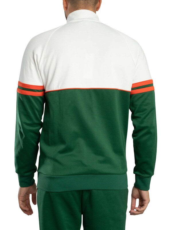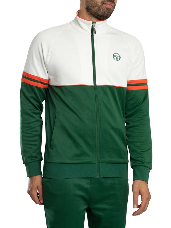 The Sergio Tacchini Orion Track Suit in Eden and Tangerine Tango is a retro-inspired set that combines comfort with athletic heritage. The top features a branded zip fastening, embroidered chest logo, open pockets, and ribbed cuffs and hem for a secure fit. The matching joggers come with a drawstring elasticated waist, elasticated ankle zips for ease of wear, open side pockets, and an embroidered logo on the leg. Both pieces are crafted with quality materials that reflect Sergio Tacchini’s legacy in sportswear design, making this a versatile and stylish tracksuit for training, casual wear, or travel.