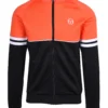 Sergio Tacchini Orion track top in Tangerine Tango/Black. Soft polyester/cotton blend fabric. Full front zip fastening with a signature Sergio Tacchini branded zipper. Funnel neck collar with piping detail. Piping across the chest and back with twin panel detail across the sleeves. Embroidered Sergio Tacchini logo on the chest. Two front pockets. Ribbed sleeve cuffs and hem. Slim fit. 60% polyester, 40% cotton.