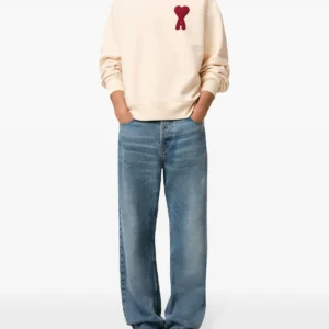 AMI Paris Ami De Coeur Patch Sweatshirt Cream White