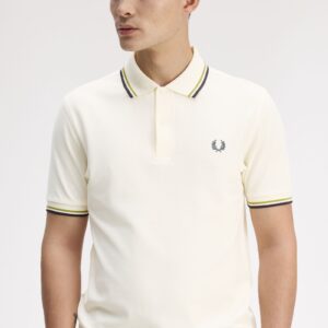 Fred Perry M3600 Twin Tipped Fred Perry Shirt – Ecru/Tennis Ball Yellow/Anchor Grey