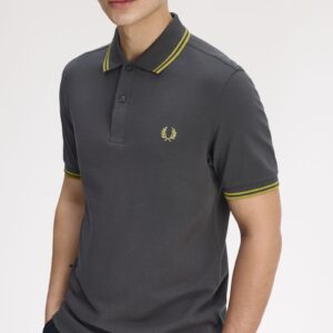 Fred Perry M3600 Twin Tipped Fred Perry Shirt – Anchor Grey/Tennis Ball Yellow
